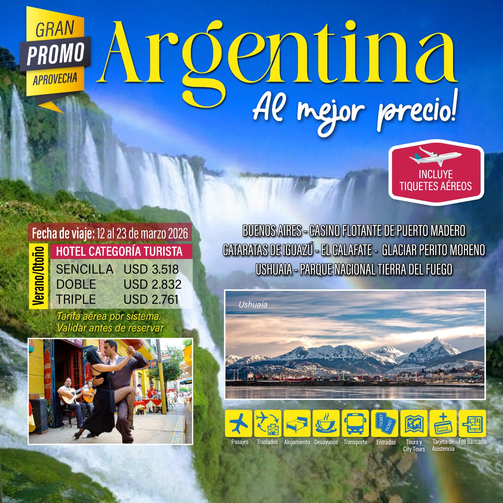 Desde la vibrante Buenos Aires hasta los majestuosos paisajes de la Patagonia, Argentina te sorprenderá con su diversidad y pasión. ¡Vení a vivirlo!